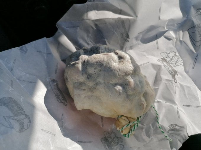 En vaig comprar tres (tres!) dissabte a la fira de la Mocadera. Un me’l vaig endrapar aquell mateix dia en arribar a casa. Els altres dos són congelats, o no me’n podré estar de finiquitar-los.